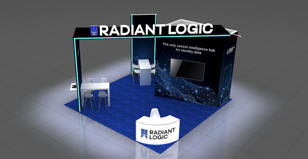 Tradeshow booth designs for Radiant Logic at Gartner in 2024 and EMEA in 2025.