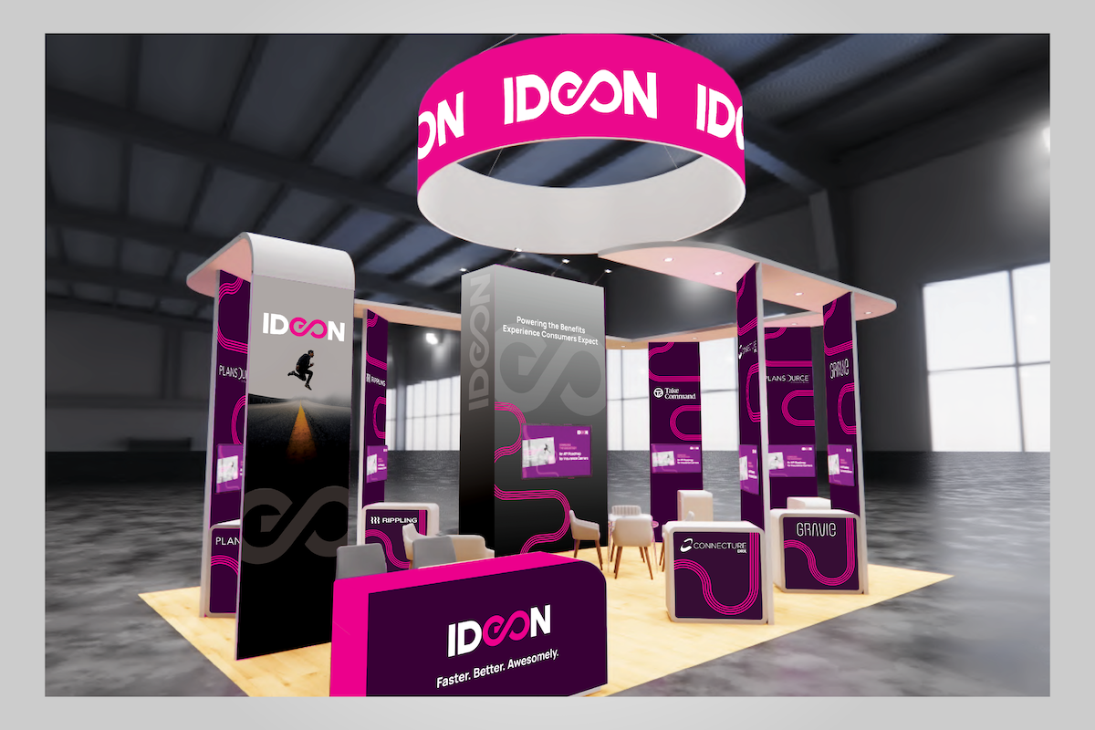 Tradeshow booth designs for Ideon at AHIP in 2023 and ITC in 2022.