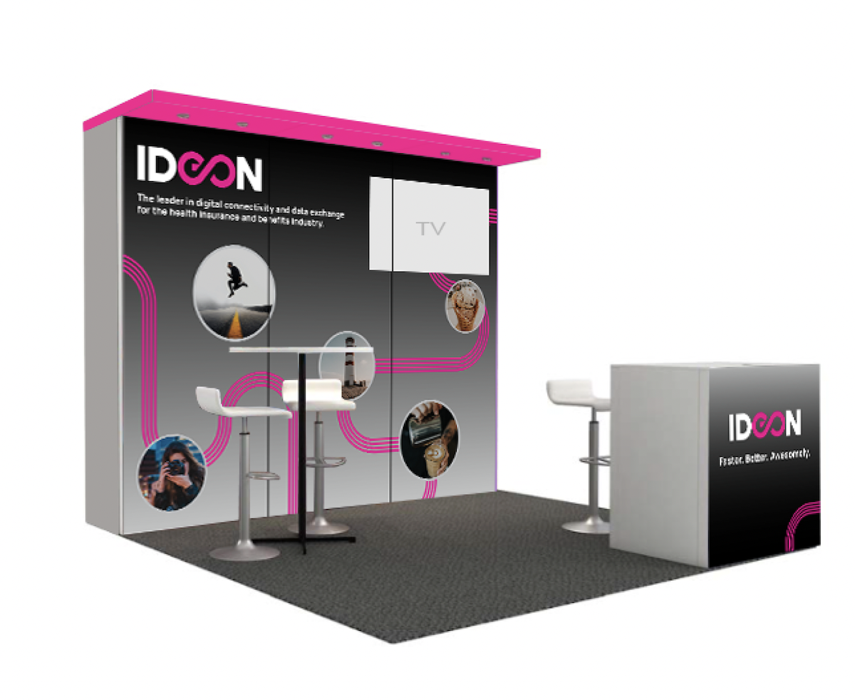Tradeshow booth designs for Ideon at AHIP in 2023 and ITC in 2022.